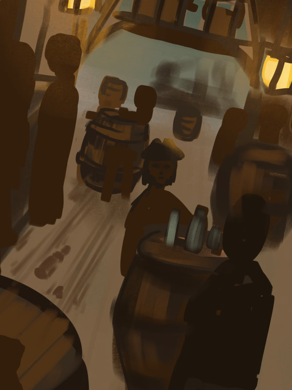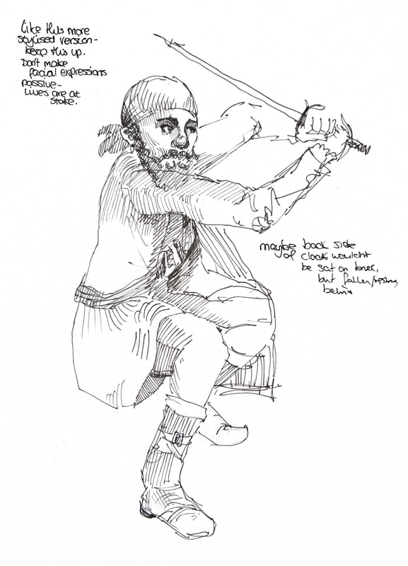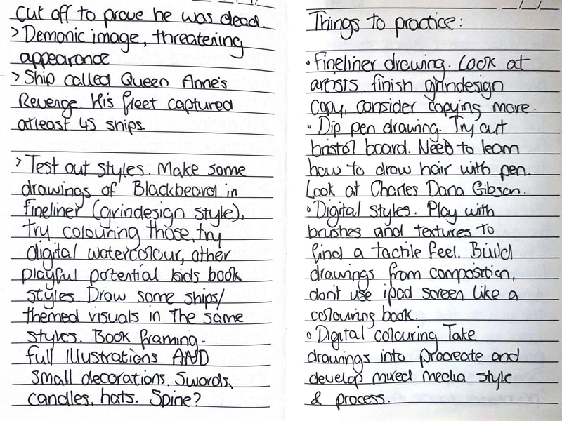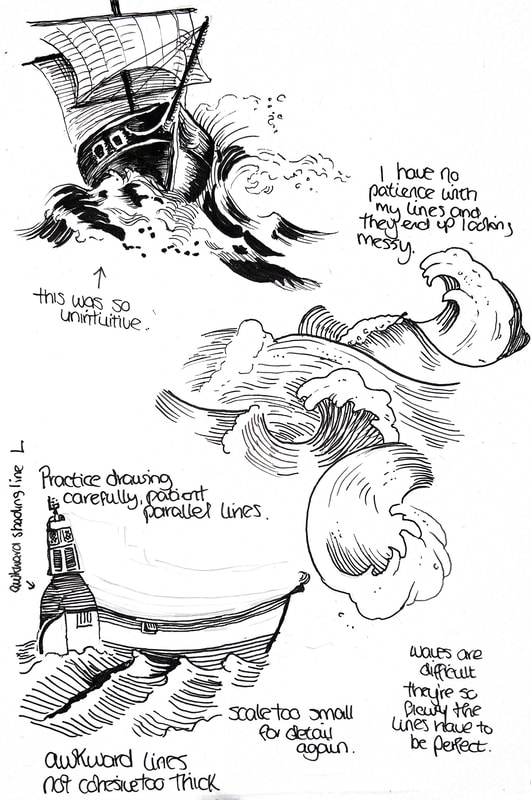 I found it quite frustrating doing these, I had so many ideas but didn't find it productive drawing at this scale. It felt restricting and looking at the boxes made me feel demotivated. I like drawing small to get ideas out but for composition, I like drawing big and blocking in colours digitally with big brushes. Those can be used as bases for final drawings, which makes the development process feel more meaningful. |