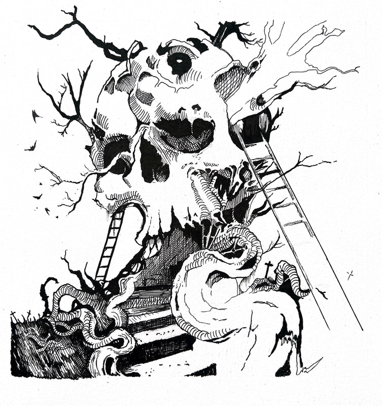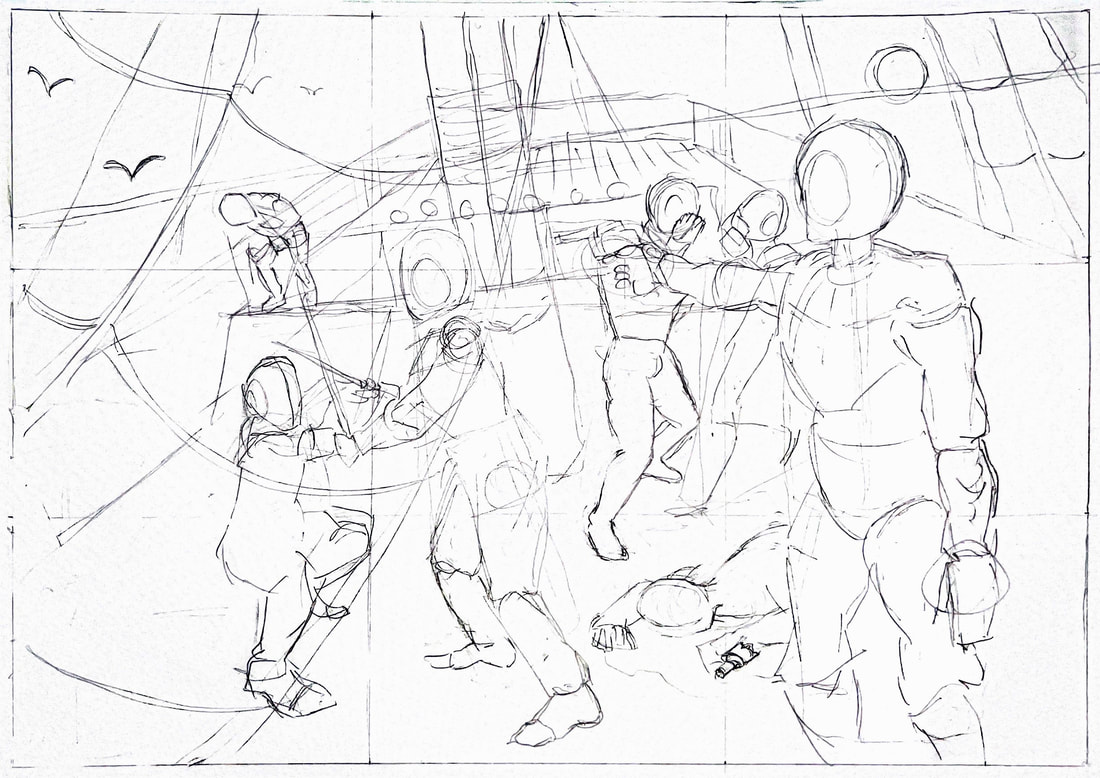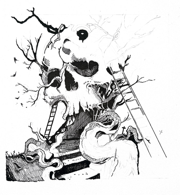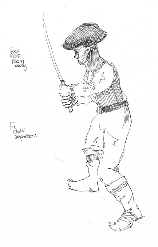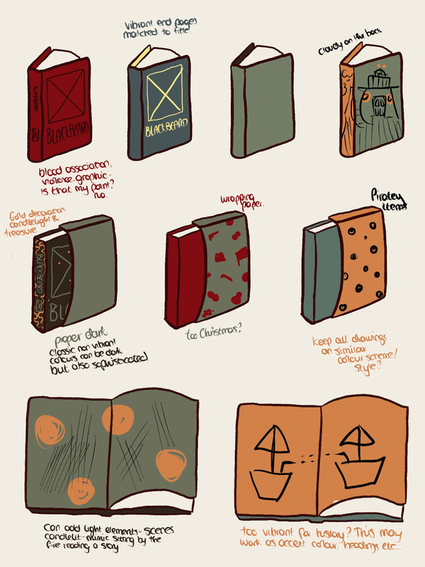 I found it quite frustrating doing these, I had so many ideas but didn't find it productive drawing at this scale. It felt restricting and looking at the boxes made me feel demotivated. I like drawing small to get ideas out but for composition, I like drawing big and blocking in colours digitally with big brushes. Those can be used as bases for final drawings, which makes the development process feel more meaningful. |