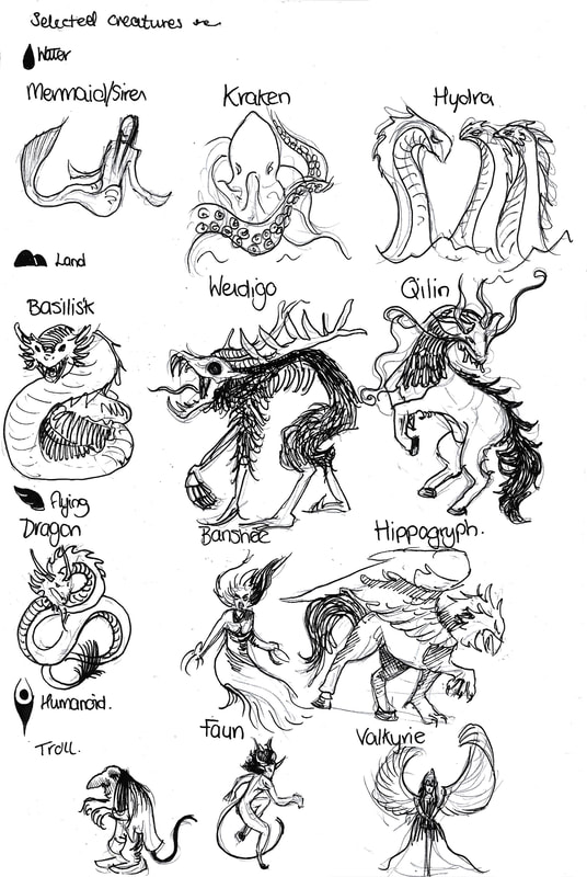 Mythical creatures are often Chimera, creatures composed of two or more other creatures, for example a Centaur being half human half horse, or a Minotaur half human half bull. |